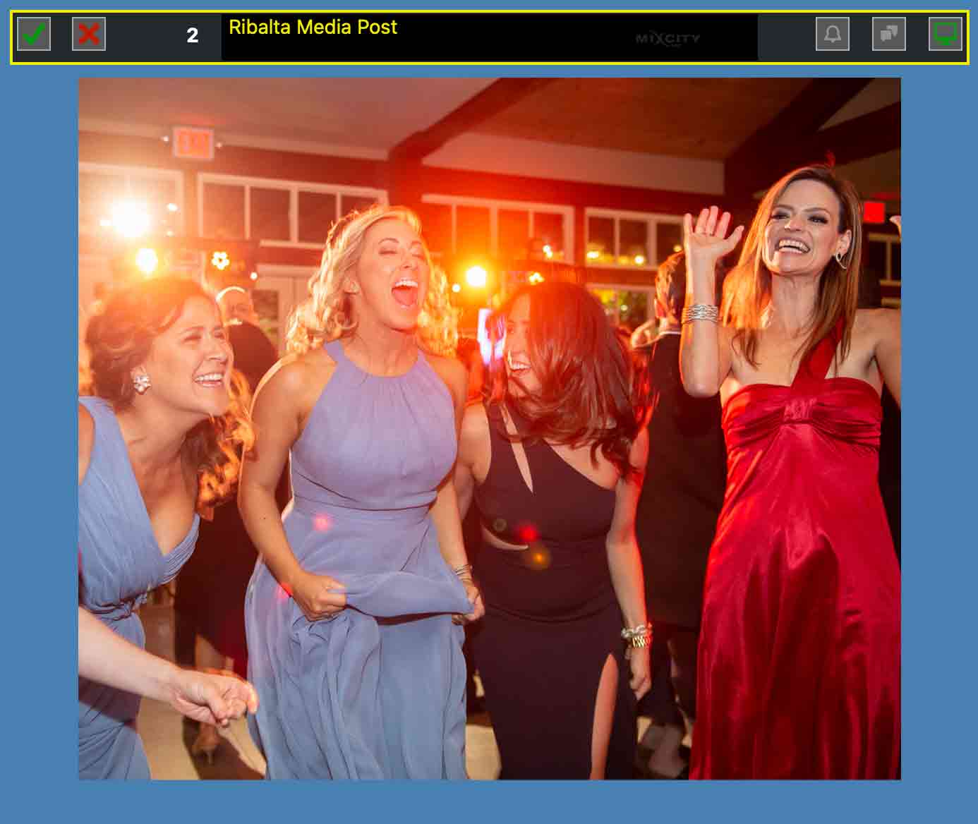 The control window works similar to the main Ribalta app's media feed. Use the green checkmark and the red X to approve and reject media. At first the you will see a picture icon.