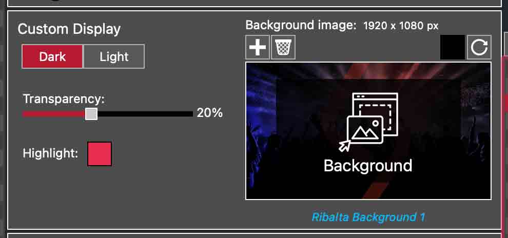 Note: The background image will only show when the Ribalta display is in fullscreen mode. There is no background image in banner mode.