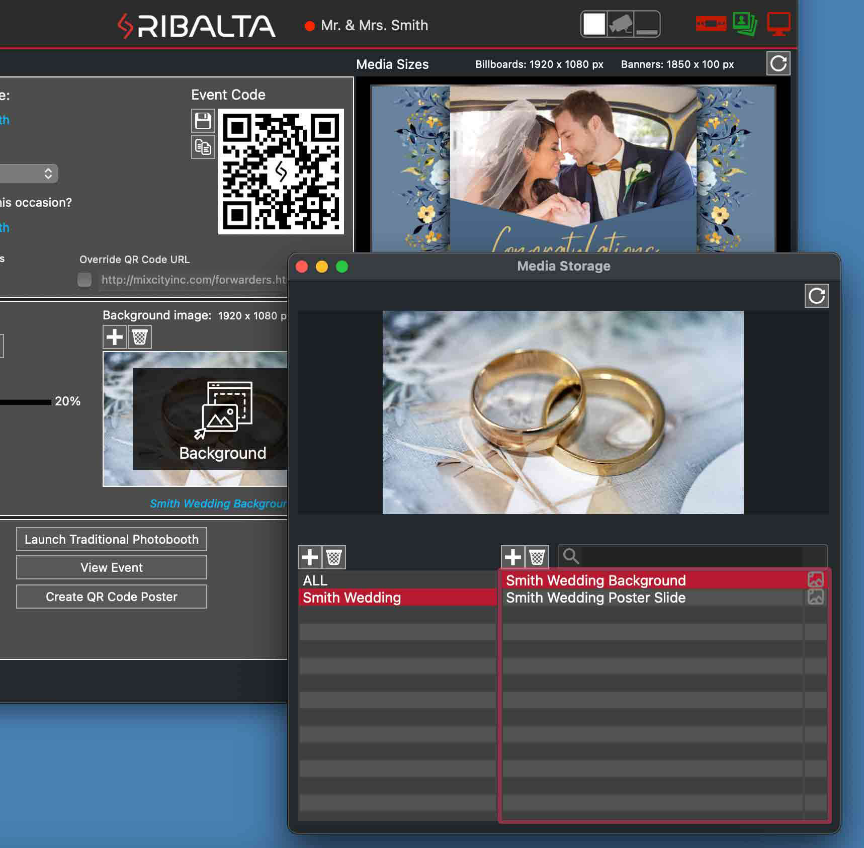 With the Ribalta Desktop app, you can design and customize your event. You can drag and drop in custom Billboard images, background images and even change the highlight colors. You can completely customize your the look of your event Media Wall allowing it to match perfectly with your event.