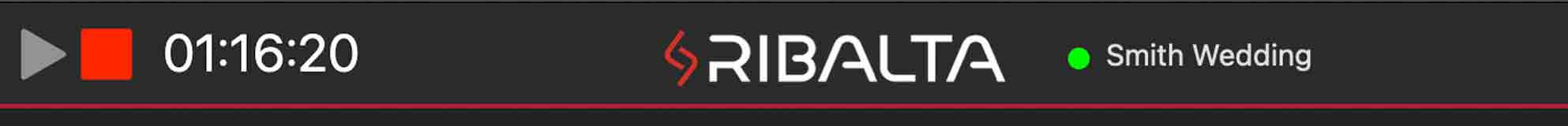 At the top of Ribalta you will see the selected Event Profile displayed. You will also see a time count to the right of the play and stop buttons. The counting clock displays how long you have been in your event.